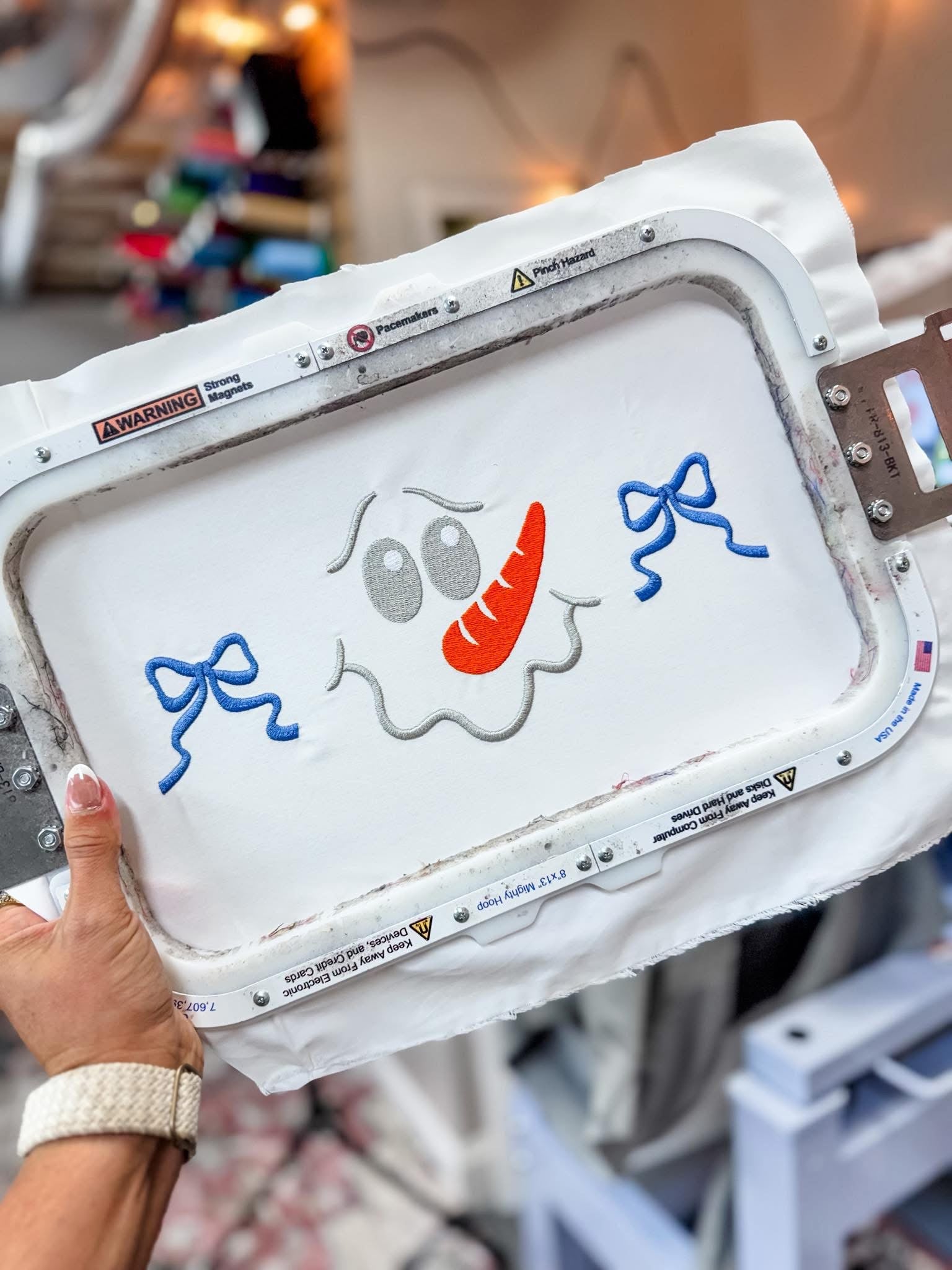Snowman and Bows - Embroidered